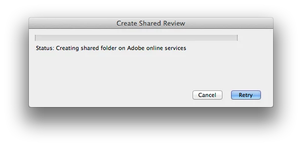 I'm a Creative Cloud subscriber, and I was trying to use the 'Send for Shared Review' feature in Acrobat, but I can't upload any files when I sign in using my Creative Cloud account info. I'm not getting any errors, just this dialog box when I get to the in upload phase.