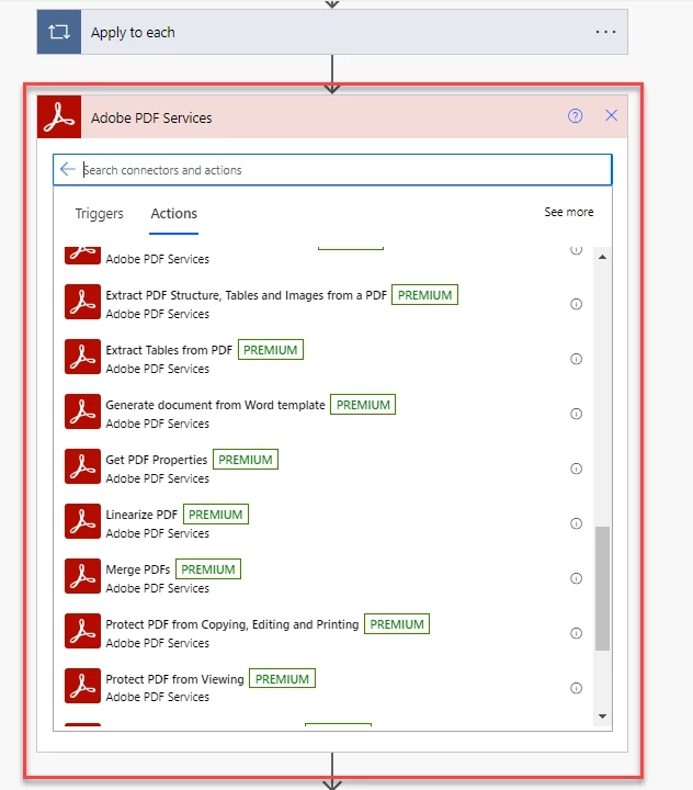 We want to create Power Automate using this Power Automate we want to achieve convert Word to PDF. & PDF API and many more related to Adobe PDF services.
