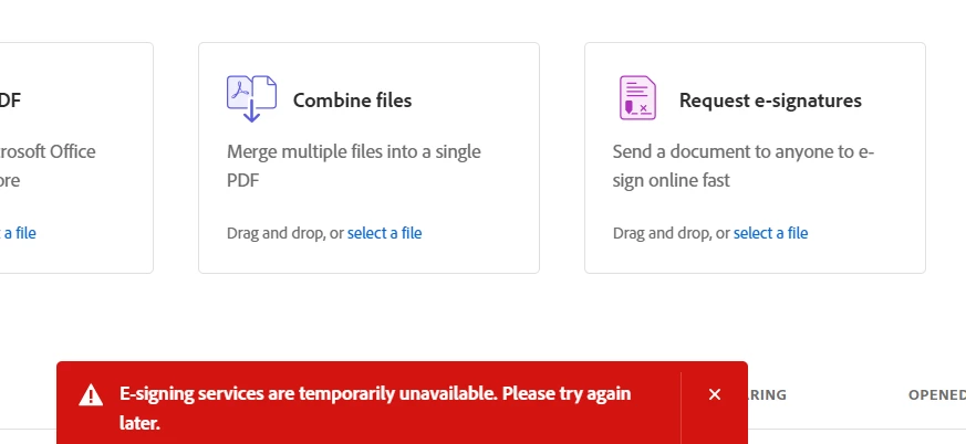 Is this the first time you are trying to use this service on this machine or network? Is this your home network or office network? Could you try switching to a different network? Also, try using the browser's incognito mode if you are accessing the Acrobat web on a browser.
