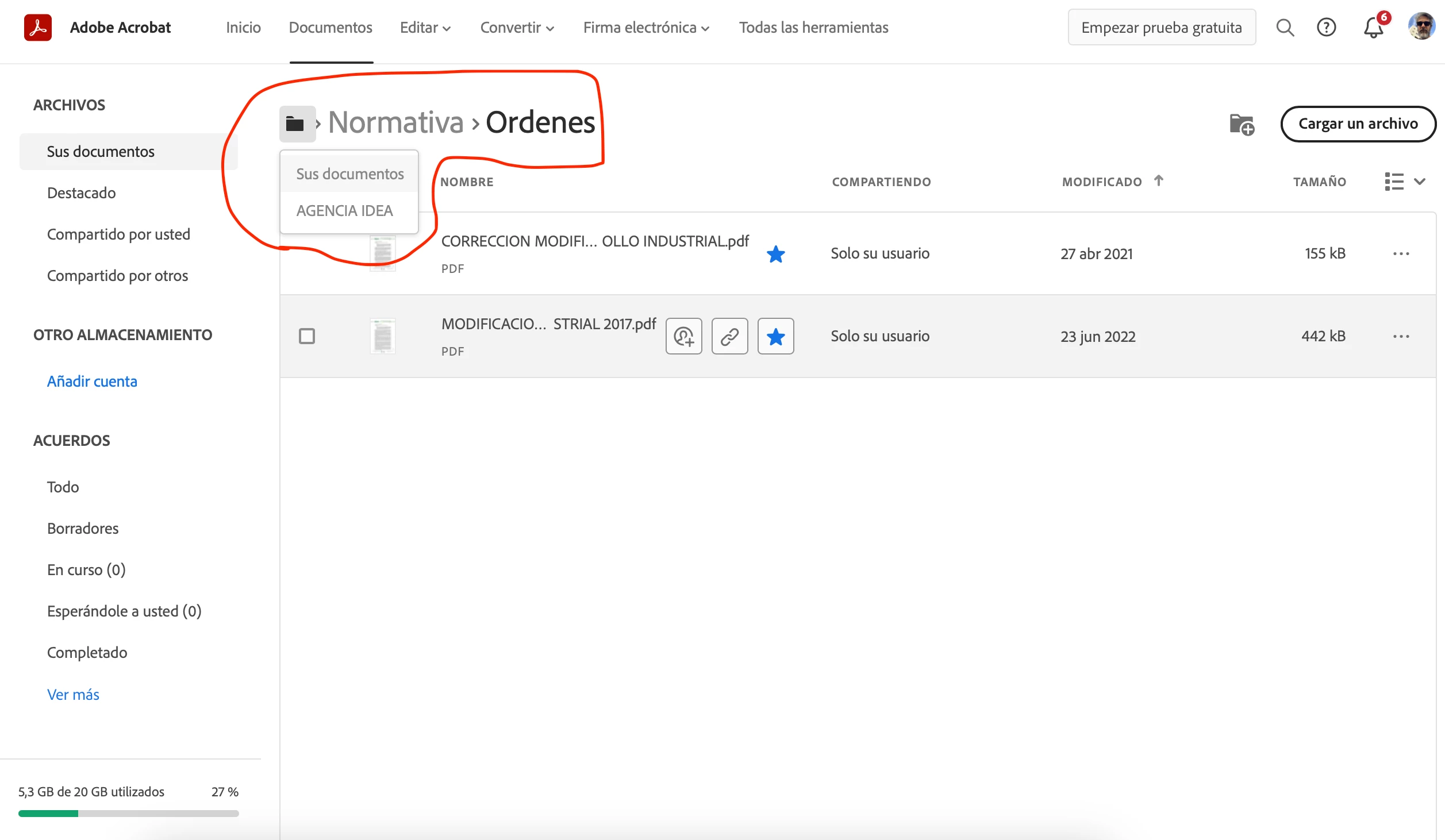 I am having problems with the documents stored in the cloud of the acrobat reader application. When I try to locate the documents included in a folder created by me, I verify that not all the ones that should be appear. However, if I do a search for the name of one of the documents that doesn't appear in the folder, the search does find the document and I can open it. The strangest thing is that when I open the document via web browser I can check that the document is actually saved in the correct folder. I am attaching screenshots for a better understanding of my problem.