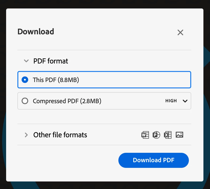 - I select to download regardless and (here is the point) – it asks if I want to download this PDF or a compressed version which is 2/3 smaller 🥴