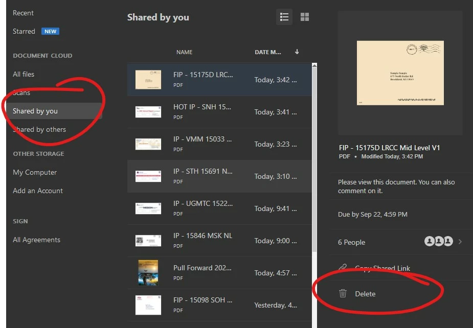 "Delete" button missing from Shared PDFs