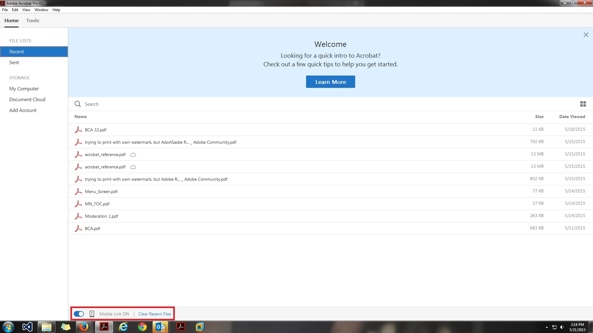 How can I delete my recent files without removing them from my Document Cloud?