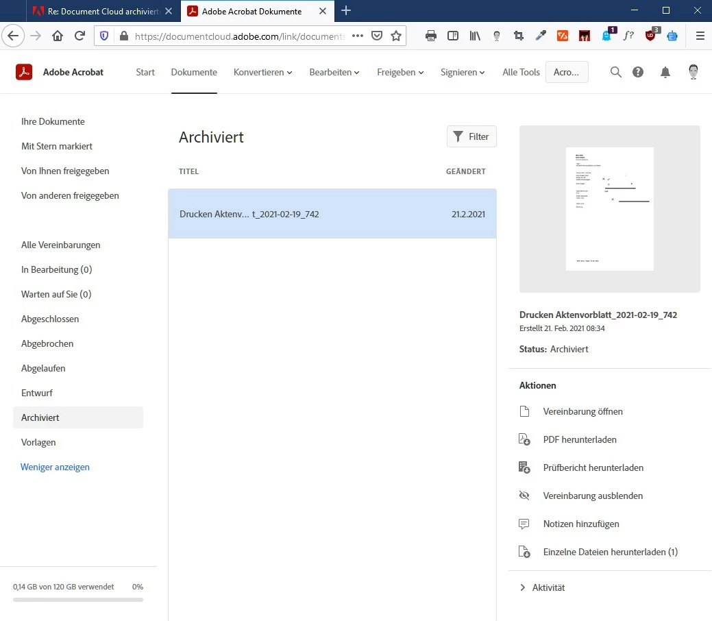 1. Vereinbarung anklicken, rechts unter "Aktivität" oder "Empfänger" anklicken.