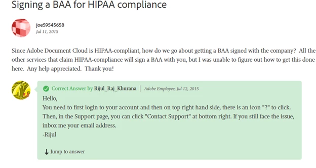 I have Adobe Pro DC and it is impossible to get a BAA without an enterprise account for a minimum of $1500 a year. Stop advertising and saying that you are HIPAA compliant. So frustrated.