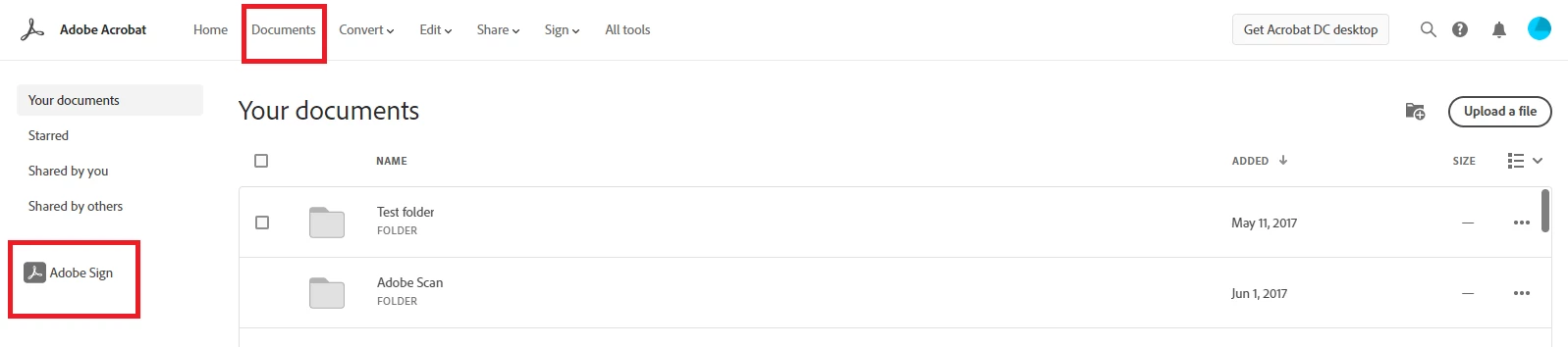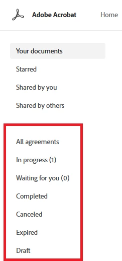 Once you are signed in, it lands you on the Home page by default. Go to Documents and check for the following options to access the Adobe Sign agreements: