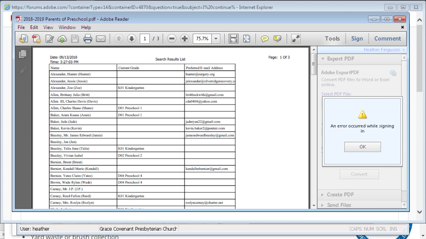 - For testing purpose, try signing in on the website https://cloud.acrobat.com/exportpdf and see if that works.