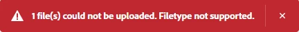 I'm unable to upload a PDF to Adobe's Creative Cloud, which our company uses for documentation reviews. When I use the upload button in Acrobat Reader, I see "Saving to Adobe's cloud storage 0%" briefly, followed by the error "An error occurred while trying to access the service." If I try to upload the PDF to Creative Cloud (https://assets.adobe.com/cloud-documents), the following error message comes up immediately: "1 file(s) could not be uploaded. Filetype not supported." (And I would hope PDF is a supported format!)