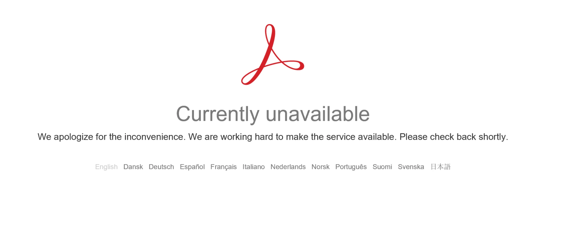 Error message with Adobe pdf services