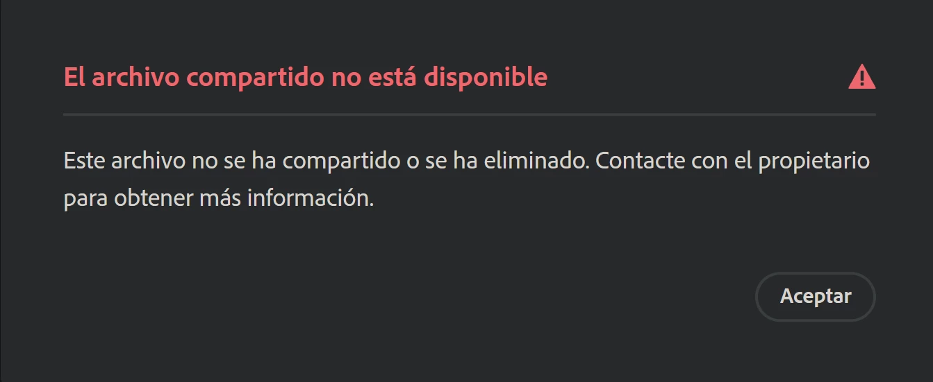 Al intentar abrirlo aparece este mensaje: "Este archivo no se ha compartido o se ha eliminado. Contacte con el propietario para obtener más información."