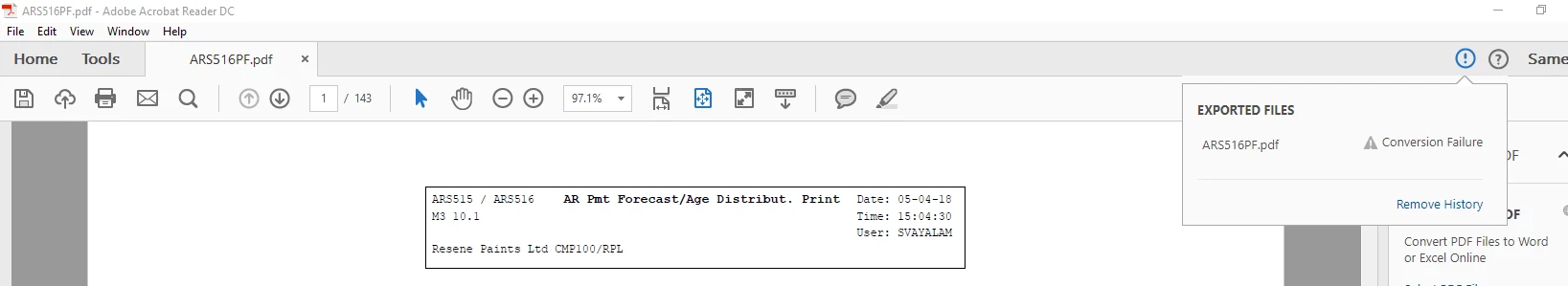 However, about the conversion failure error you may follow the troubleshooting steps suggested in the help document here- An error occurred while trying to access the service | unable to connect to PDF services