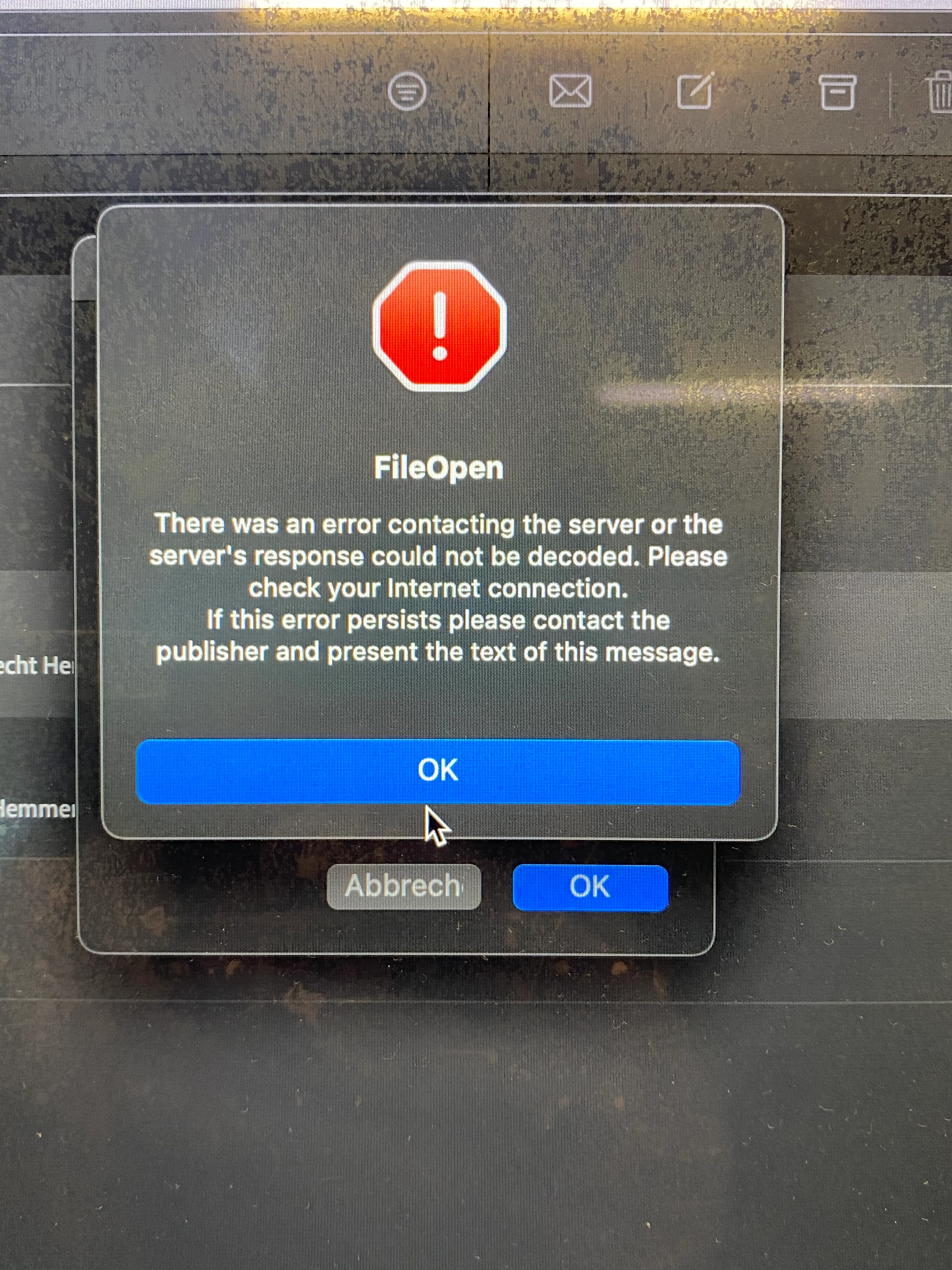 Hallo, ich habe den FileOpenInstaller-B990 installiert, um passwortgeschützte Dokumente auf dem Mac zu Öffnen (Benutzername und Passwort funktionieren), erhalte beim Öffnen aber immer eine Fehlermeldung.