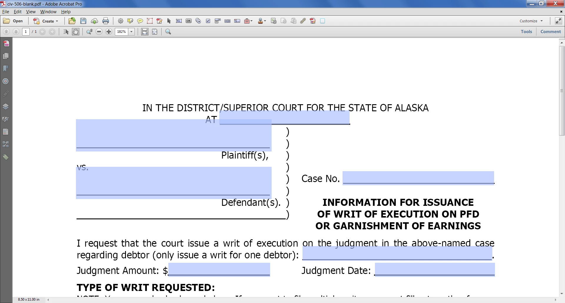 filling in court form - go to next blank line