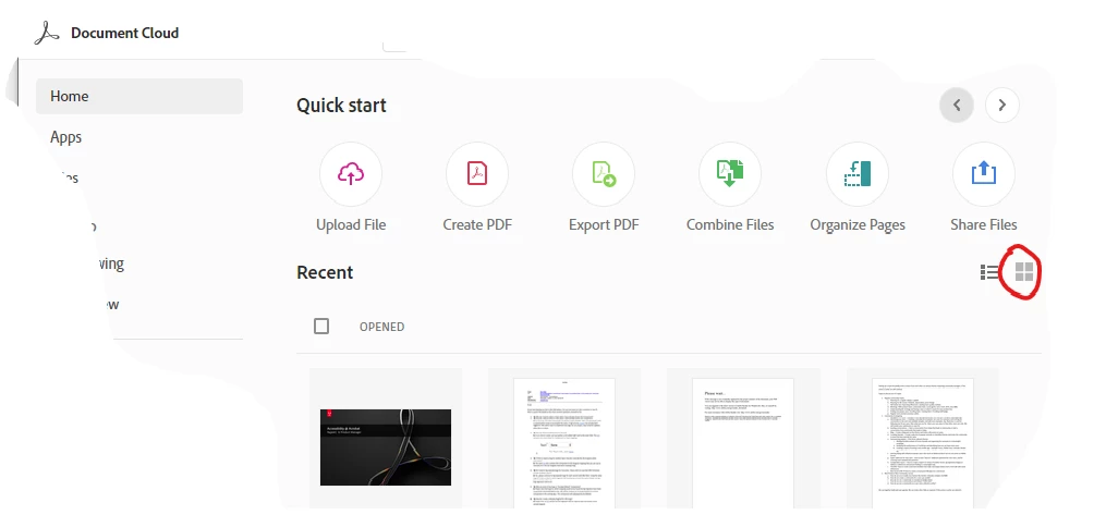 I have a few hundred files in Adobe Cloud how do I find one I am looking for without going through all 100 pone at a time and viewing them to see what they are? How can I see thumbnails that are larger enough to find the document I am looking for?