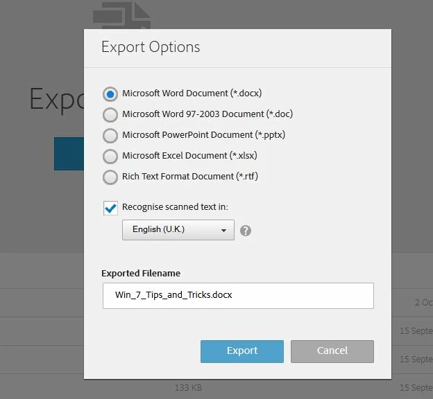 I have uploaded a pdf-file. Where is the command to convert it to docx?