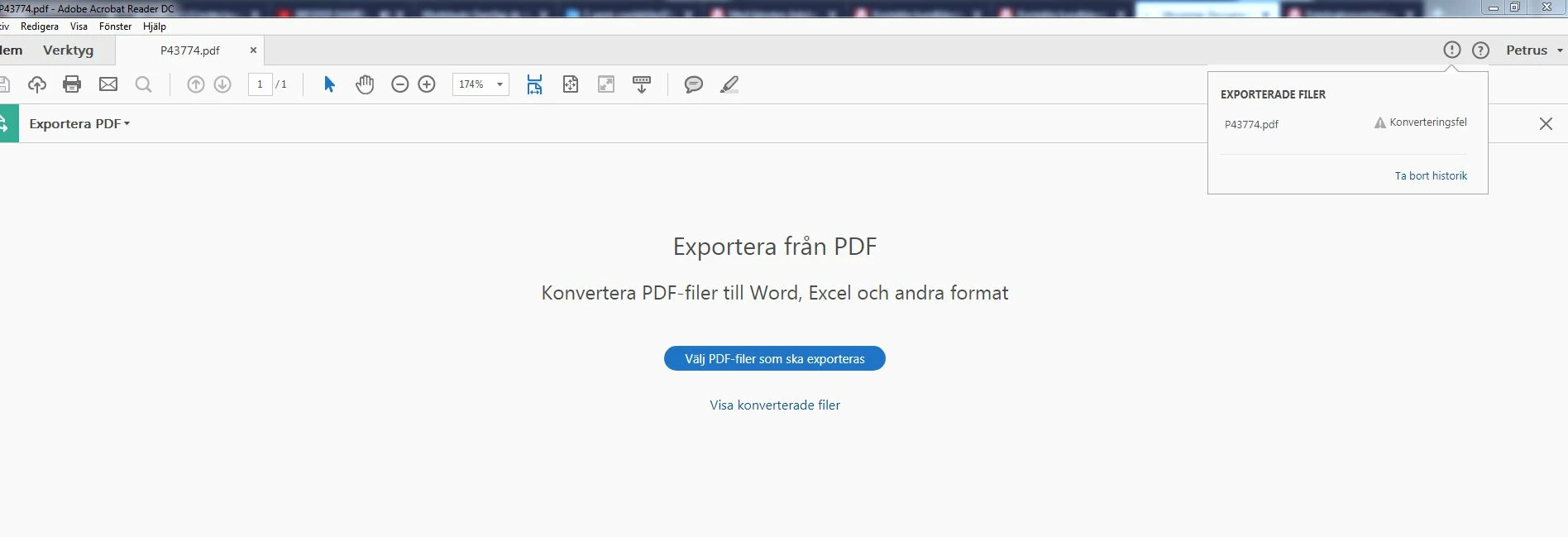 Hej! Försöker konvertera pdf till excel men det står konverteringsfel. Fungerar ej på flera olika filer, betalar för denna tjänst som borde fungera. Vad ska jag göra hjälp mig?
