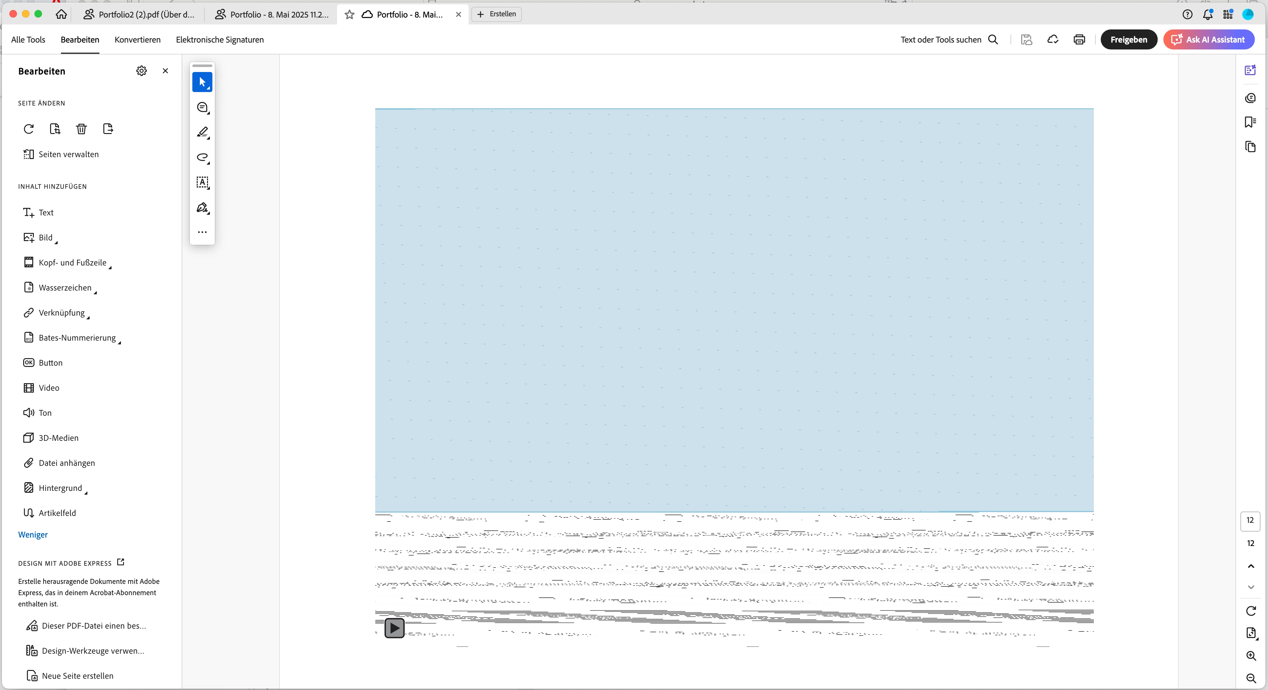 ich habe ein mp4 Video in mein PDF eingebettet welches leider nur einmal abgespielt wird. Sobald es aufhört oder ich zur Seite davor und dann wieder zum Video scrolle sieht man nur noch ein verzerrtes Standbild. Das Video sollte vorzugsweise ohne zusatz klick abgespielt werden sobald man auf die Seite kommt und dann erst durch klick nocheinmal angesehen werden können.