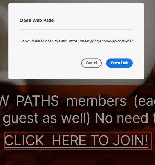 I have a PDF with a link that works perfectly—it directs users straight to the calendar session as intended. However, when the PDF is included in an email, the link no longer goes directly to the session. Instead, it triggers a pop-up asking if we want to open the link in a web page. Is there a way to disable this pop-up?