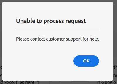 I was able to adjust the pages in a PDF earlier today, now every time I try I get a box that says "Unable to process request". I've tried different browsers, same result. I have a plan that covers this feature.