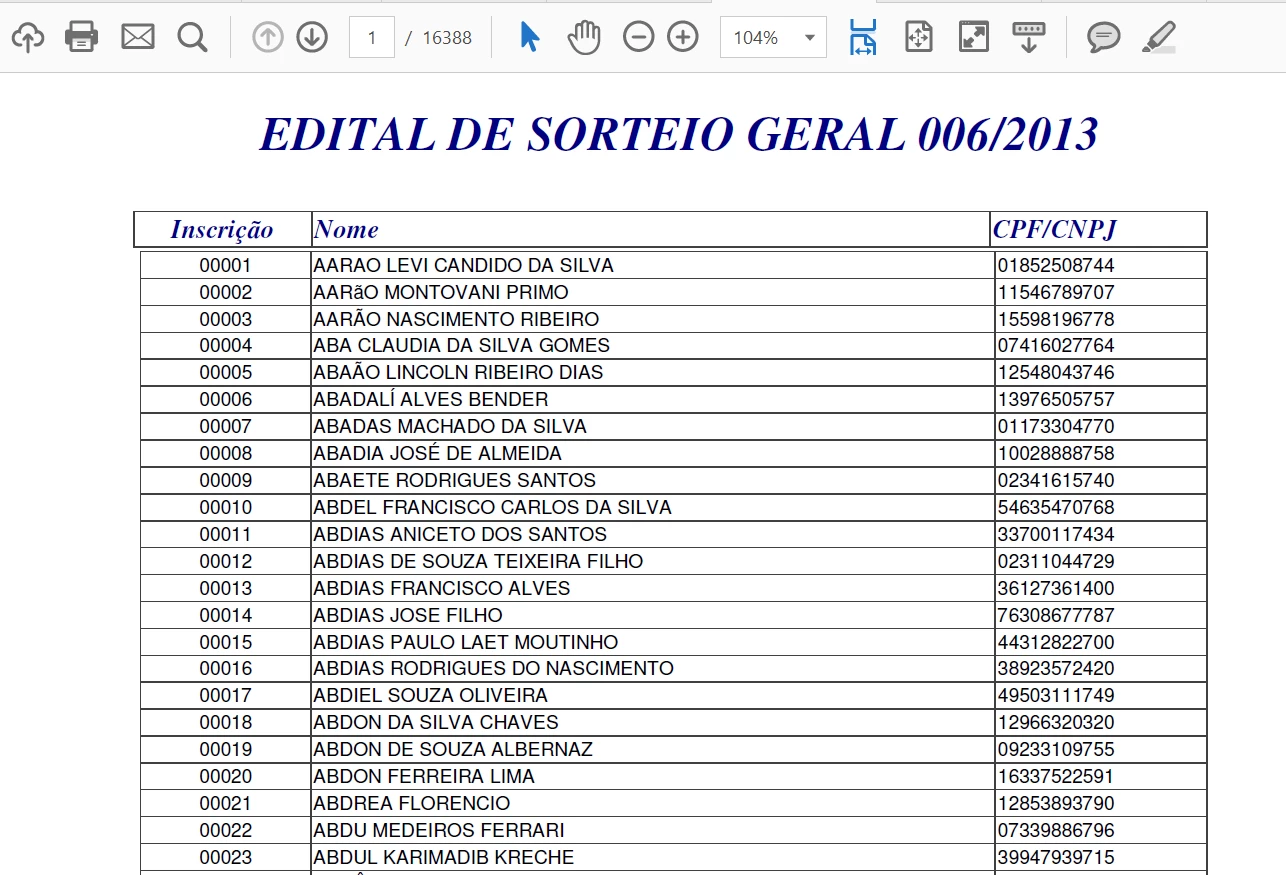 Tenho PDFs que são listas de inscritos para um programa governamental.