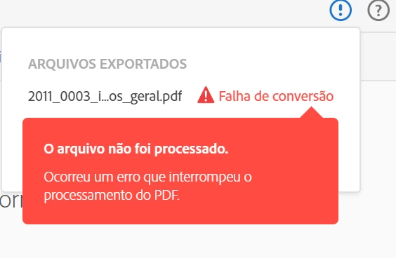 Alguns arquivos possuem cerca de 16.500 páginas e quando tento converter para xlsx dá erro, conforme a figura abaixo.