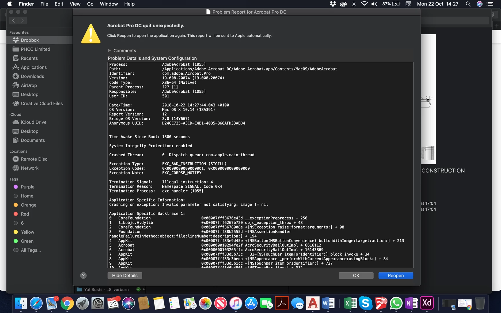 Does Adobe Creative Cloud has an issue today...for some reason my Mac can not open any PDF Files - I keep getting this ( see screen shot Can some one get back to me this afternoon ASAP to advise what your issue is - This is affecting my work? Thanks you 22-10-18 14.29.