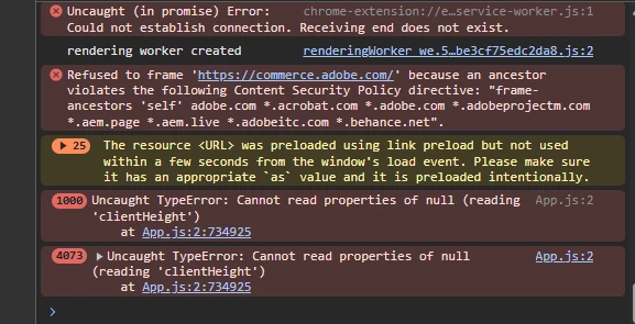 Today I noticed that the pdfs don't work when they try to turn on through the chrome extension. When I turn on a file, I can see it for a while, doom the Adobe overlay starts to load everything from the screen disappears. When I went into the explore option I noticed that one error appears all over (image 3).