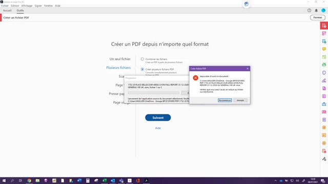 Il m'est impossible depuis quelques temps de générer des pf en masse. Voici en PJ la copie d'écran qui s'affiche.