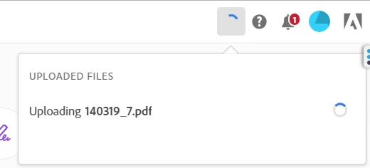 I'm frequently using the Adobe Document Cloud as file sharing platform. In the past days there was an update on the UI and I noticed that the progress bar when uploading file is gone. There are some chances to have it back? Or maybe a percentage progress?