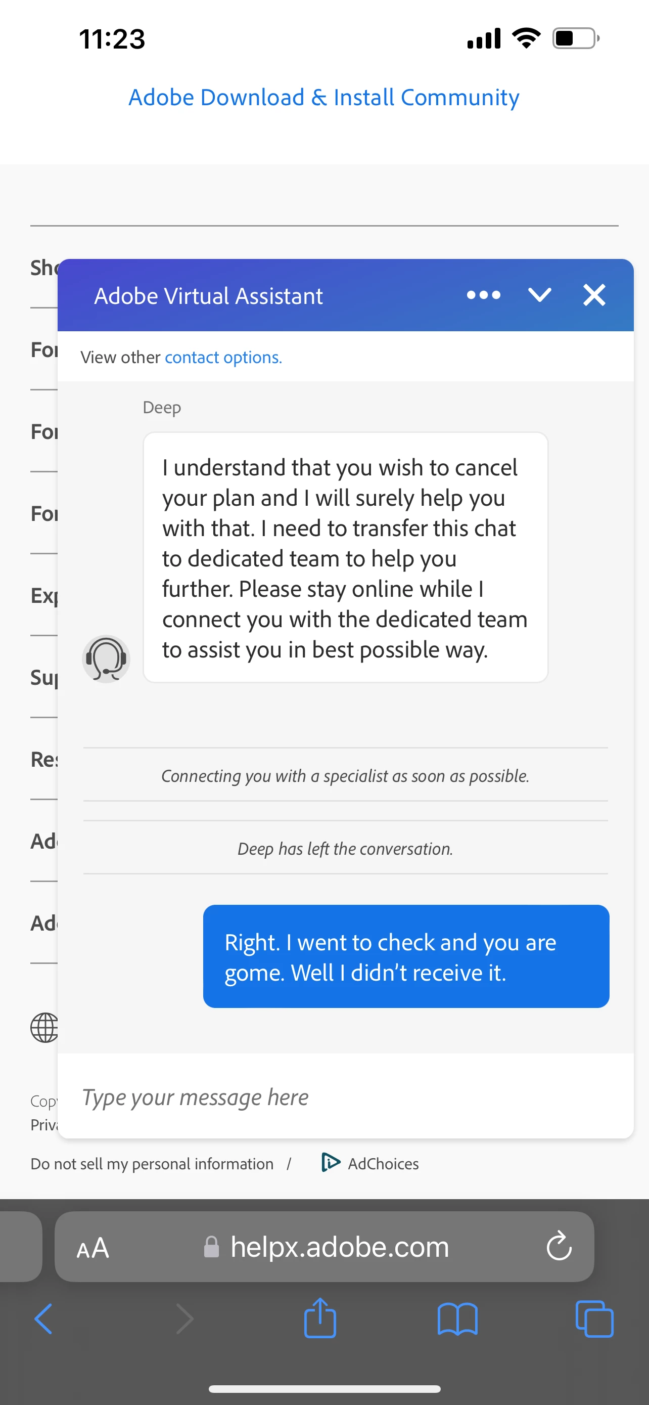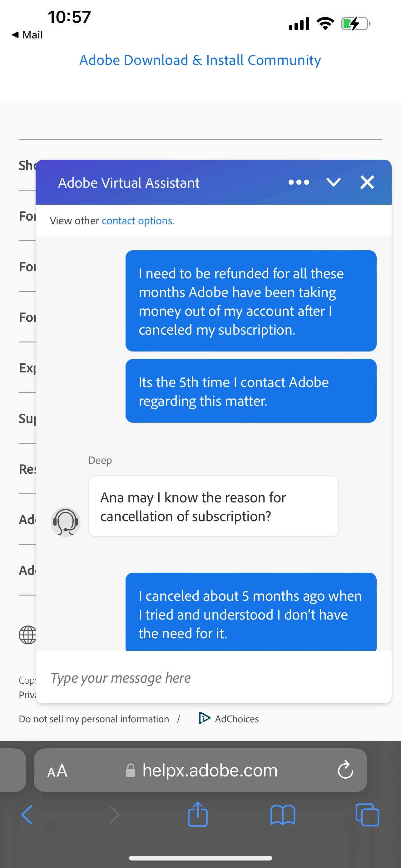 Have you reached out to our support team for cancellation and refund issues? If not, please visit the below link to start a conversation with our support team to get better assistance in real-time: Contact Customer Care (adobe.com)