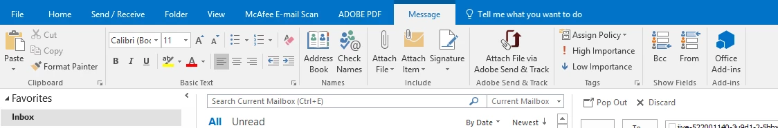 For some reason, the button for Adobe Send and Track only shows when replying to an email in Outlook 2016. I've tried resetting the toolbars, but I never modified them to begin with. I do have Acrobat DC and I am signed in to Send and Track.
