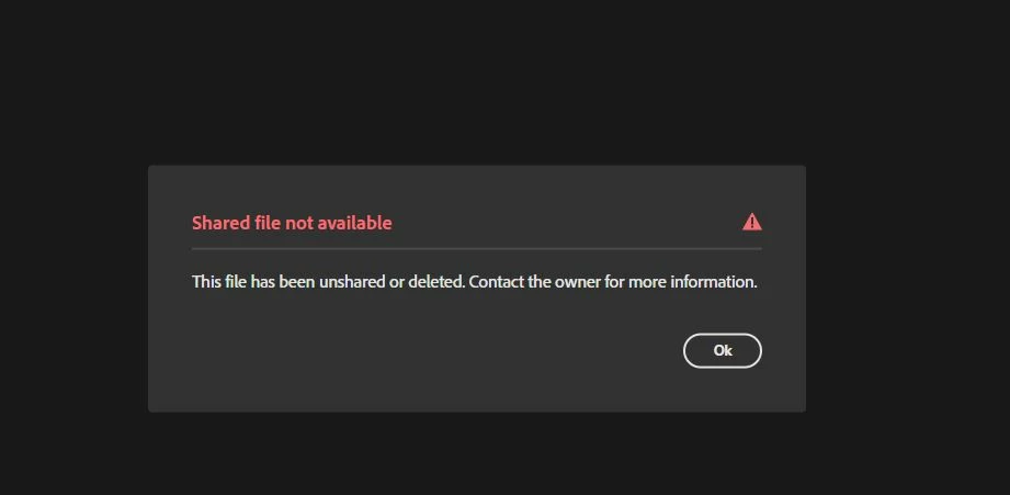 I have been using Adobe Send and Track to send large files for years but within the last week or so it has stopped working and I am unable to find a solution in the community. I have attached the error message I and others get when trying to access the files through the links that Adobe creates. The files in question are not deleted or moved in the cloud. They are right where they are supposed to be, we just can't access them. Can someone suggest a solution? Nothing has changed since it last worked, firewalls, security software, etc. It just stopped allowing access with the files being deleted message. I have attached a screenshot of the message.