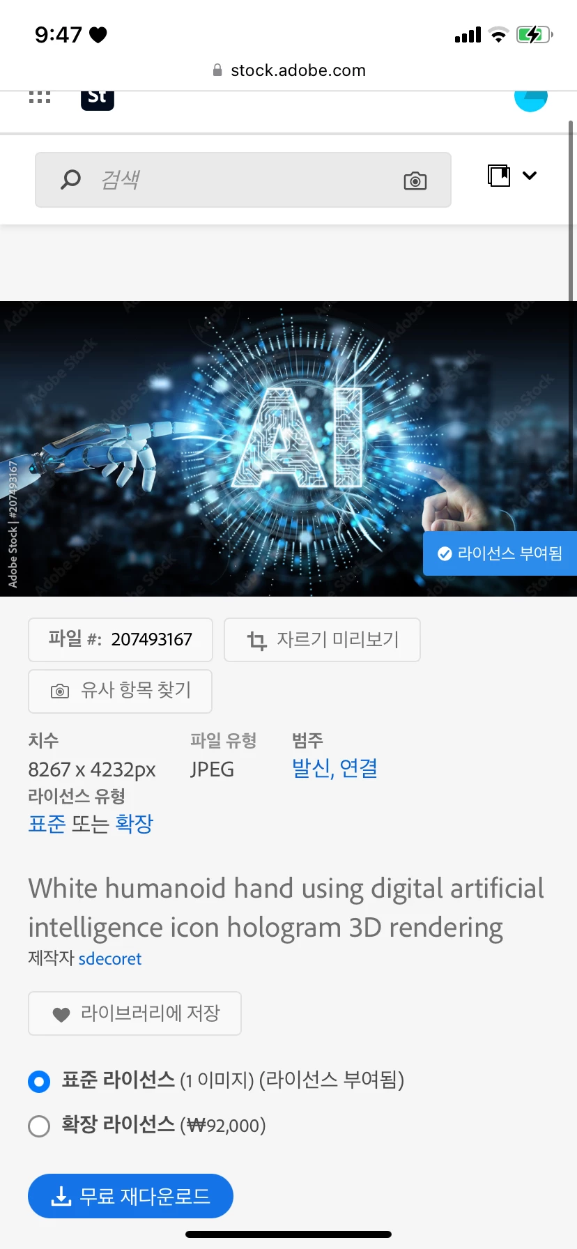 Jjeen2562925354x4ParticipantForum|Forum|3 years agoAugust 13, 2022Question어도비 스톡 유료 이미지 프리랜서 사용법 문의Forum|Forum|3 years agoAugust 13, 20221 reply686 views안녕하세요, 저는 프리랜서로 어떤 회사 일을 맡게 되어 첨부 이미지 구입을 했는데, 제 개인 어카운트(표준 라이센스)로 구입한 이미지를 외주 업체 웹용 포스터 제작 사용해도 문제가 없나요?행사 홍보 웹용 포스터로 메일로 발송하고 홈페이지에 게시할건데 조회수 10000정도 입니다. 댓글로 링크보라고 하지마시고ㅠㅠ 정확한 답변 주시면 감사하겠습니다.Terms of useLicensing