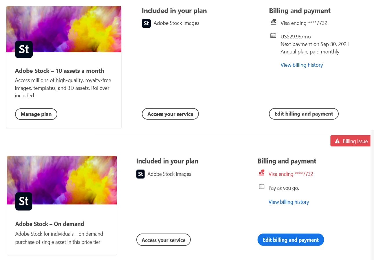 I seem to have 2 stock plans. One for $30 and another for $20. The $30 plan was paid and shows that on my account. The other plan states it hasn't been paid. I tried to change payment and it accepted it, however my account still says payment info needs attention. I'm wondering why I have 2 plans to begin with? How do I cancel one of these plans. When I access the plan that states non payment, It comes up just like my $30 plan does. I need help. I see that the $20 plan states On Demand. I don't remember ever ordering or using this plan. How do I cancel this plan? Thanks