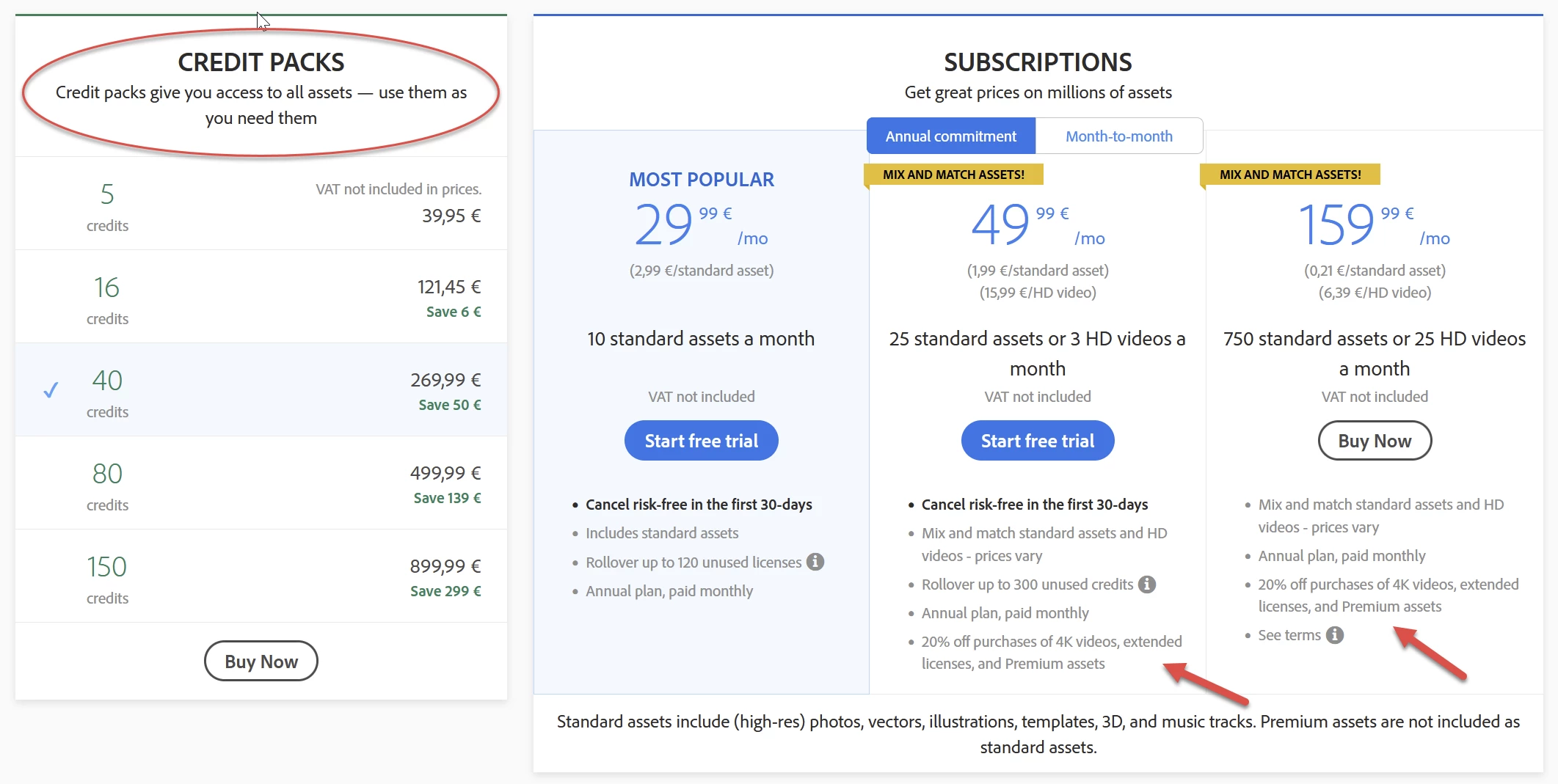 In our account we see we have 53 assets (Beschikbare quota) left. But if I want to download a picture, I get a screen with two options: