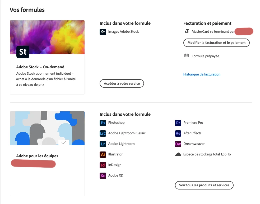 (Sic'est le support de teams responsable pour cela, il faut contacter support via la console: https://adminconsole.adobe.com/support. Seulement un administateur du plan a accès à la console)