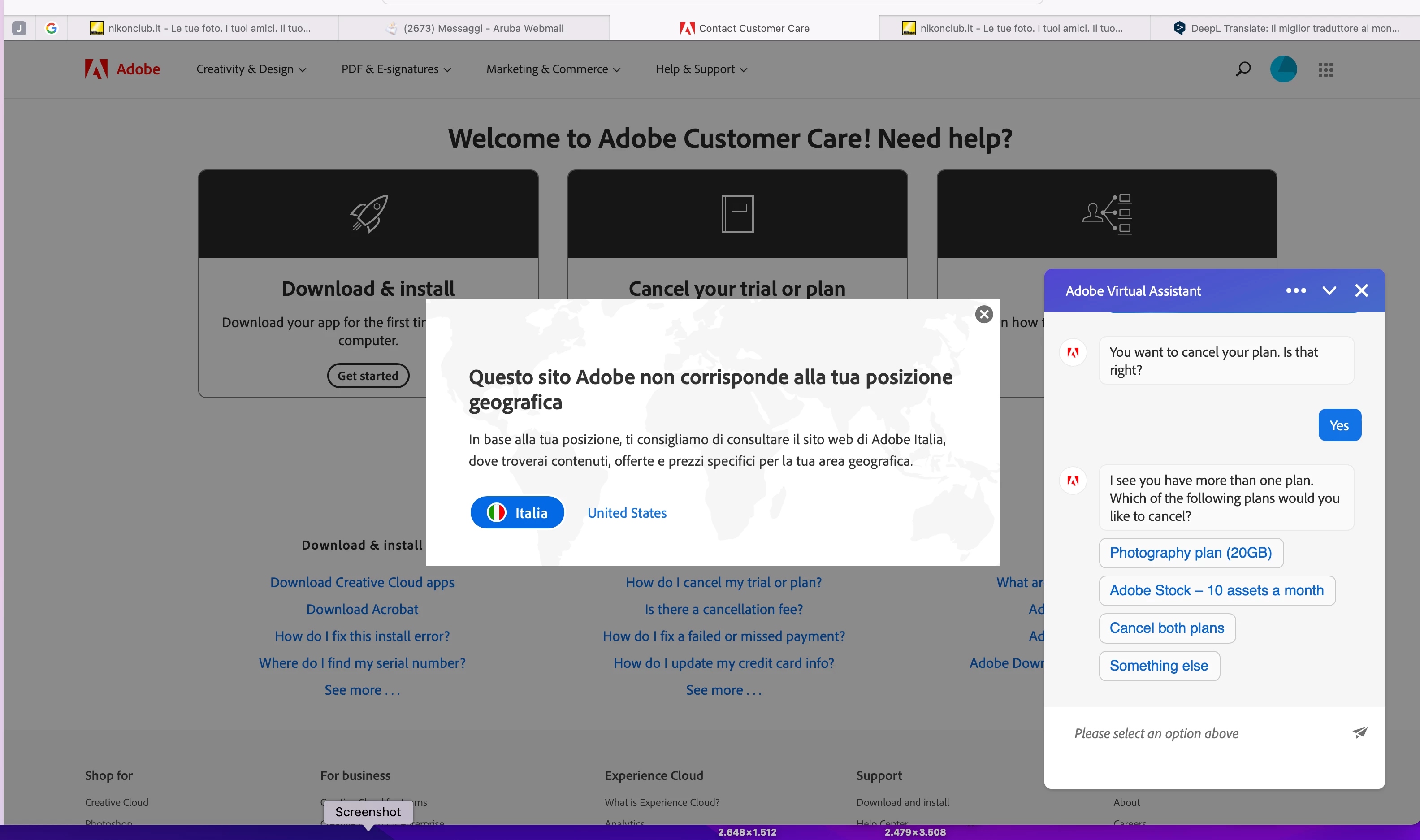 Adobe customer care can be contacted by beginning a secure chat session at https://helpx.adobe.com/contact.html?rghtup=autoOpen. Pop-up blockers need to be disabled! If the chat window fails to open, or is non-responsive, use a different device to start the interaction.