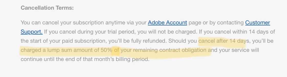 I signed up for the free trial of Adobe Stock offered when I signed up for Adobe Premiere, and found I never used it. When I went to go cancel, the notice said there was an "early cancellation fee" for $135. This is so predatory I can't even believe it. I'm trying to find a number to call to talk to a human person about this but haven't found anything. Until I can get in touch with someone I'll be taking to social media and also letting my network of editor friends and students know NOT to use Adobe services.