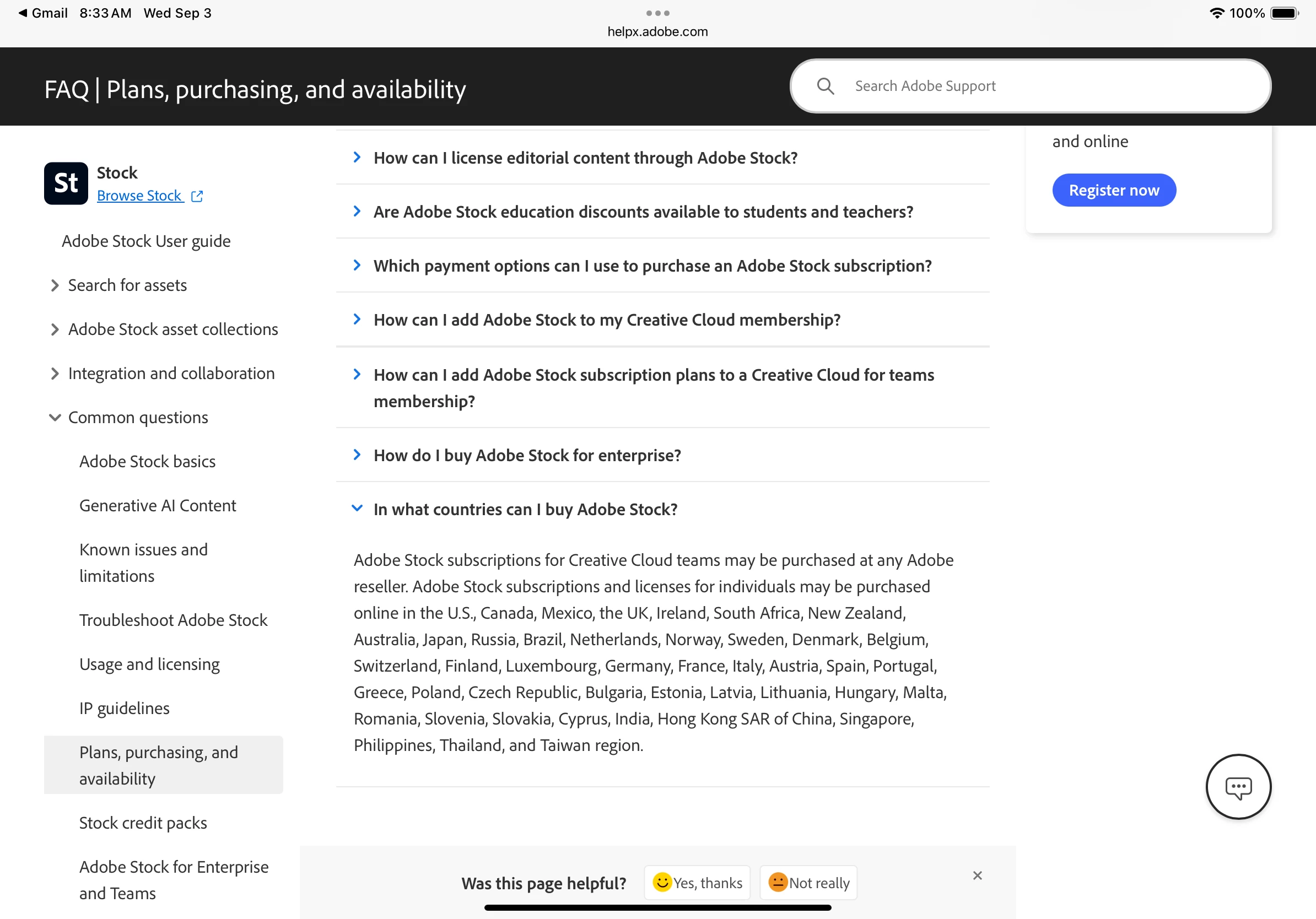 Could somebody share with me please where I can find the list of regions where Adobe is not available?