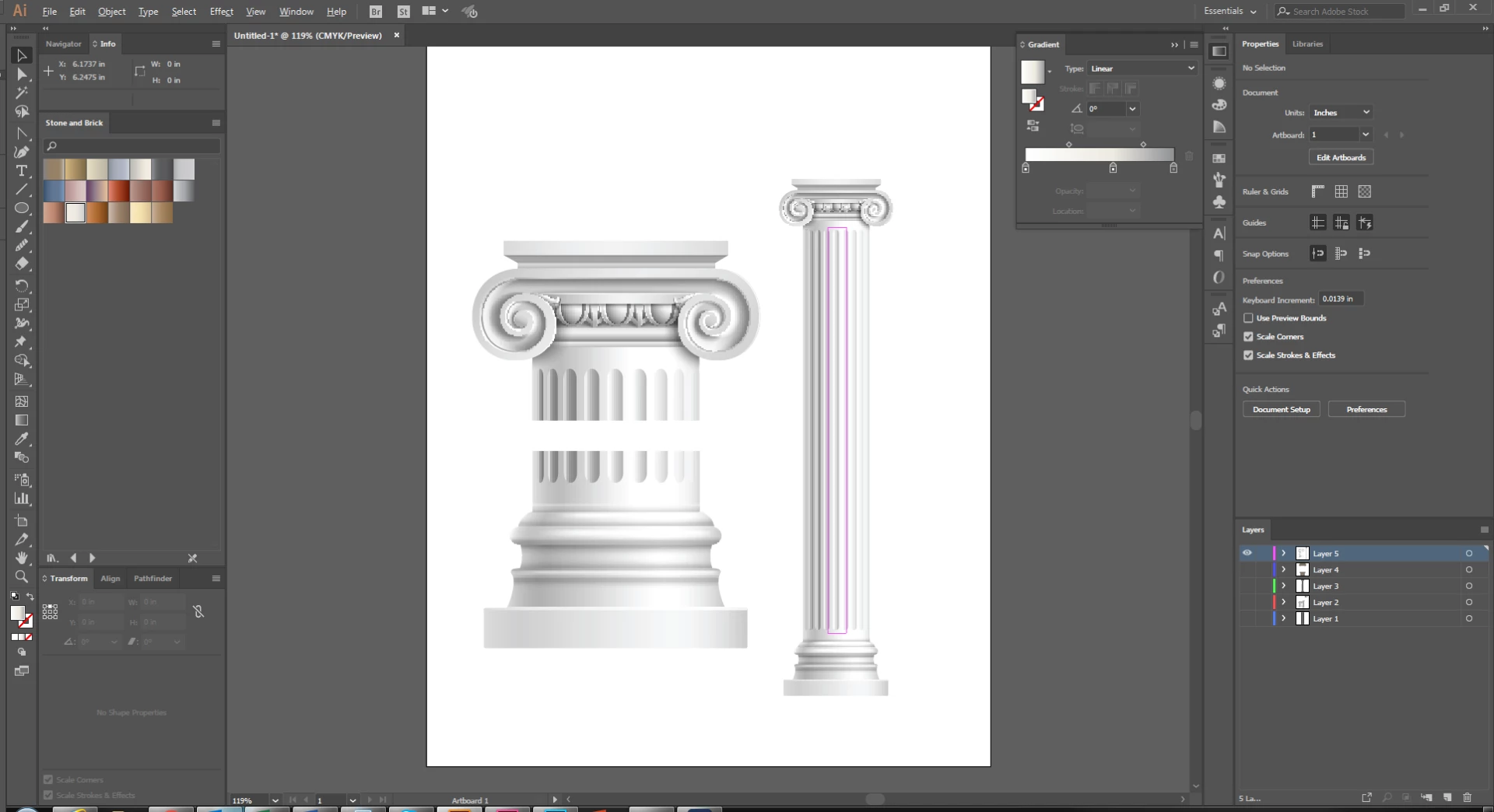 The .eps interpretation of the gradients doesn’t work as expected if you place or “drag and drop”.