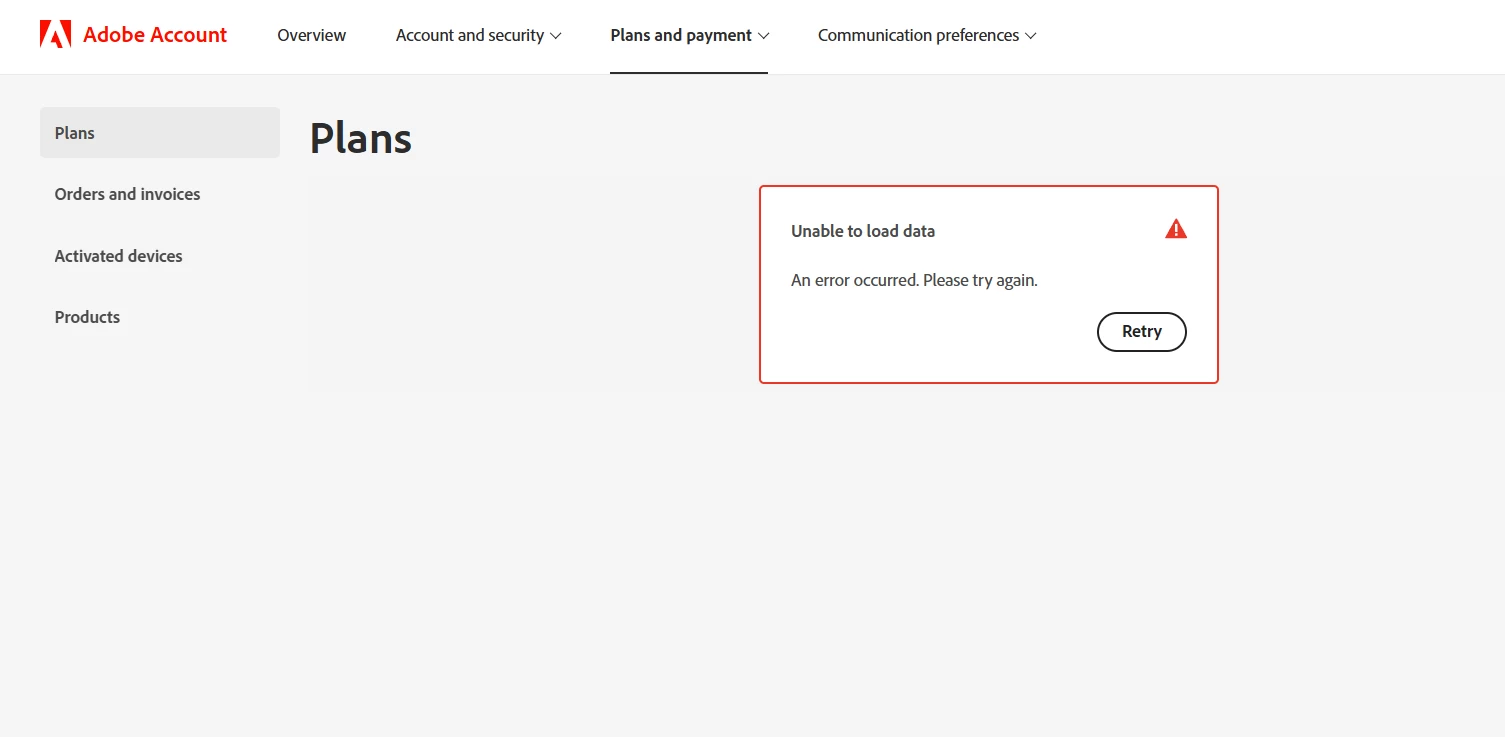 Can't Cancel Adobe Stock Free Trial – "Unable to Load Plans" Error