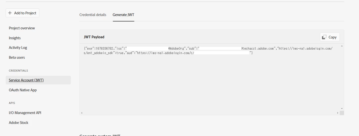 As for JWT Payload I can find it in our Project of Adobe Developer Console (and I'm going to change "exp"), but not sure about secret code. Is it written in Credential details?