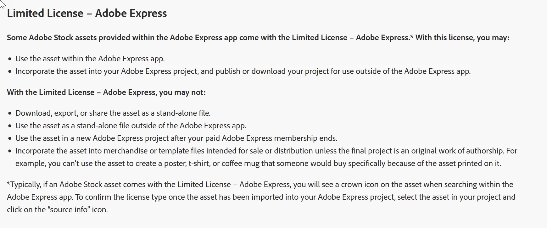 I understand that "Standard" licensed assets in Adobe Express can be used for "commercial projects", but I want to double-check: