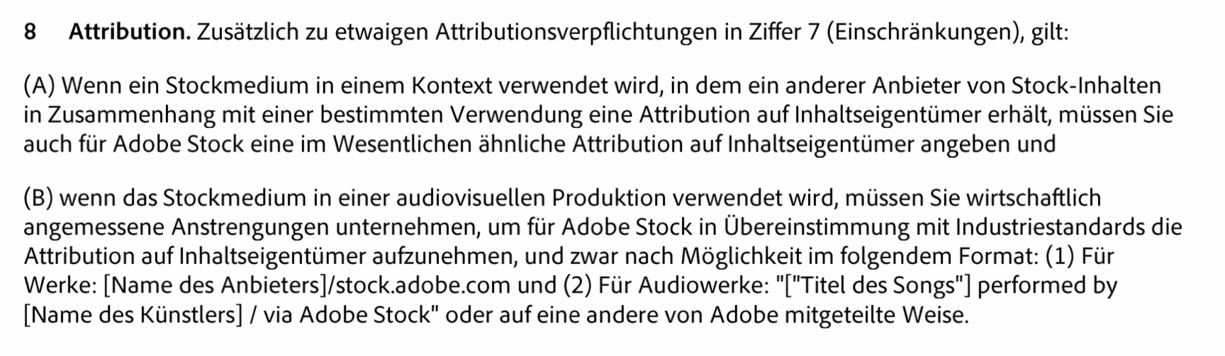 In einem Forumsbeitrag aus dem Jahr 2018 habe ich gelesen, man soll © [Photographer's name] / Adobe Stock” verwenden.