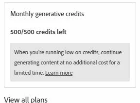 Hi @bobf26873082 - The "500/500 credits" displayed in the profile dropdown represent the generative credits available in your account, which you can use to generate AI assets.