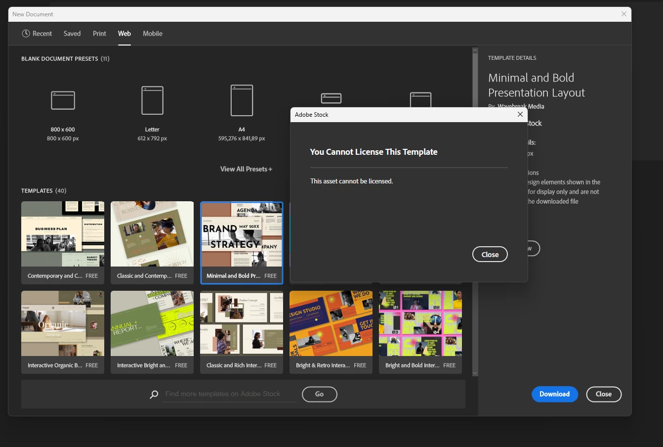 I can't download free templates from any adobe apps. I tried on pc and mac. it warns that it cannot be licensed. For 1 week I've been in contact with adobe support but they can't solve it 🙂