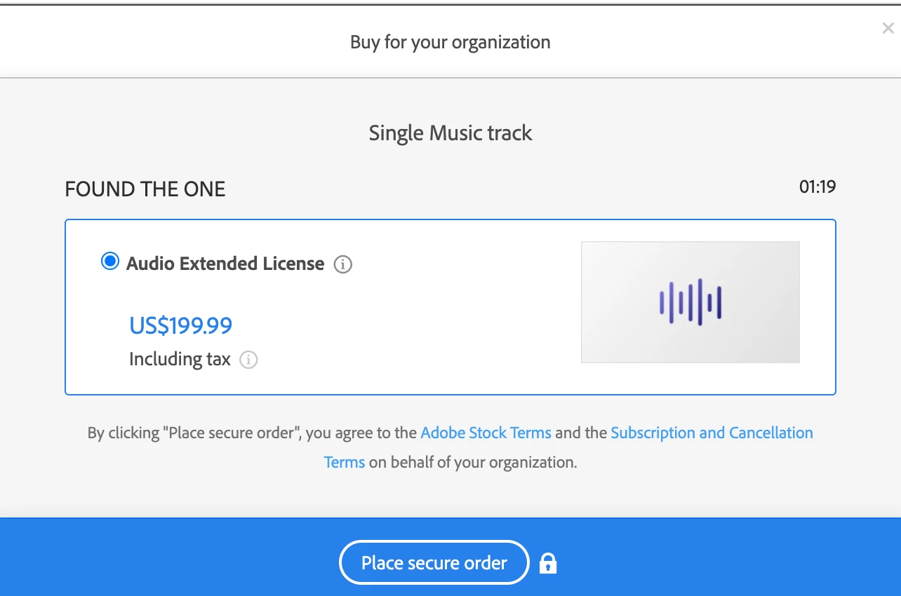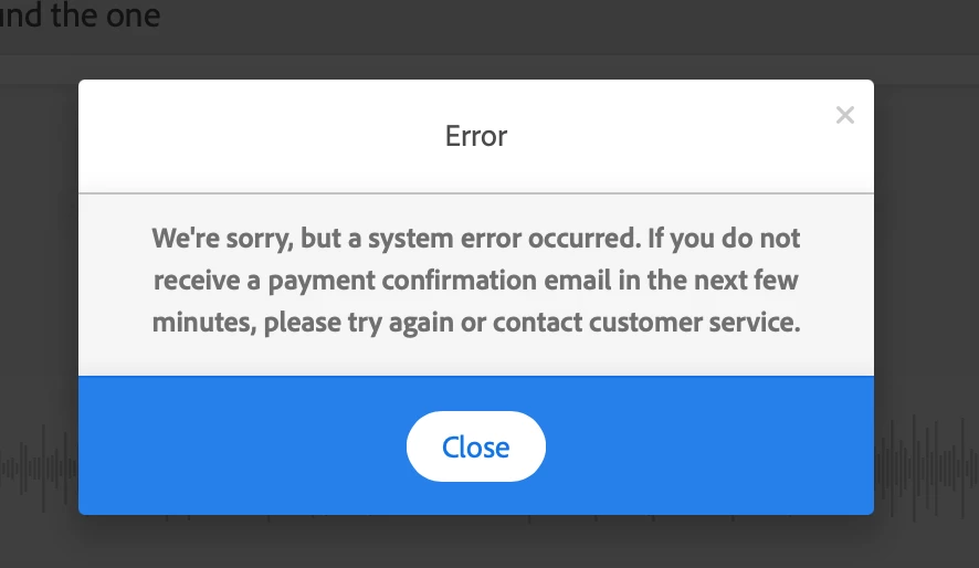 Hello, this happened when I'm trying to purchase the license of a song, do any of you know how to solve it? (I already have a subscription for adobe stock) Thank you so much!!!