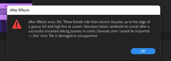 FILE #: 517992007 will not download and when I try to open with After Effects is says it is damaged