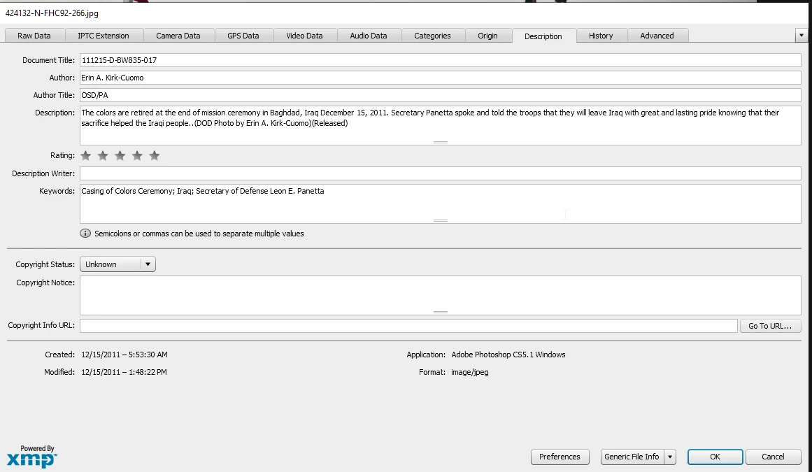 The picture @J E L shows is slightly different. It may well be that the DoD released that specific picture into the public domain, but that your picture has been entered in the Reuters database. And probably, it can only be used in an editorial sense, which also means that you would have needed to acknowledge the source. All stock agencies have similar rules in this matter.