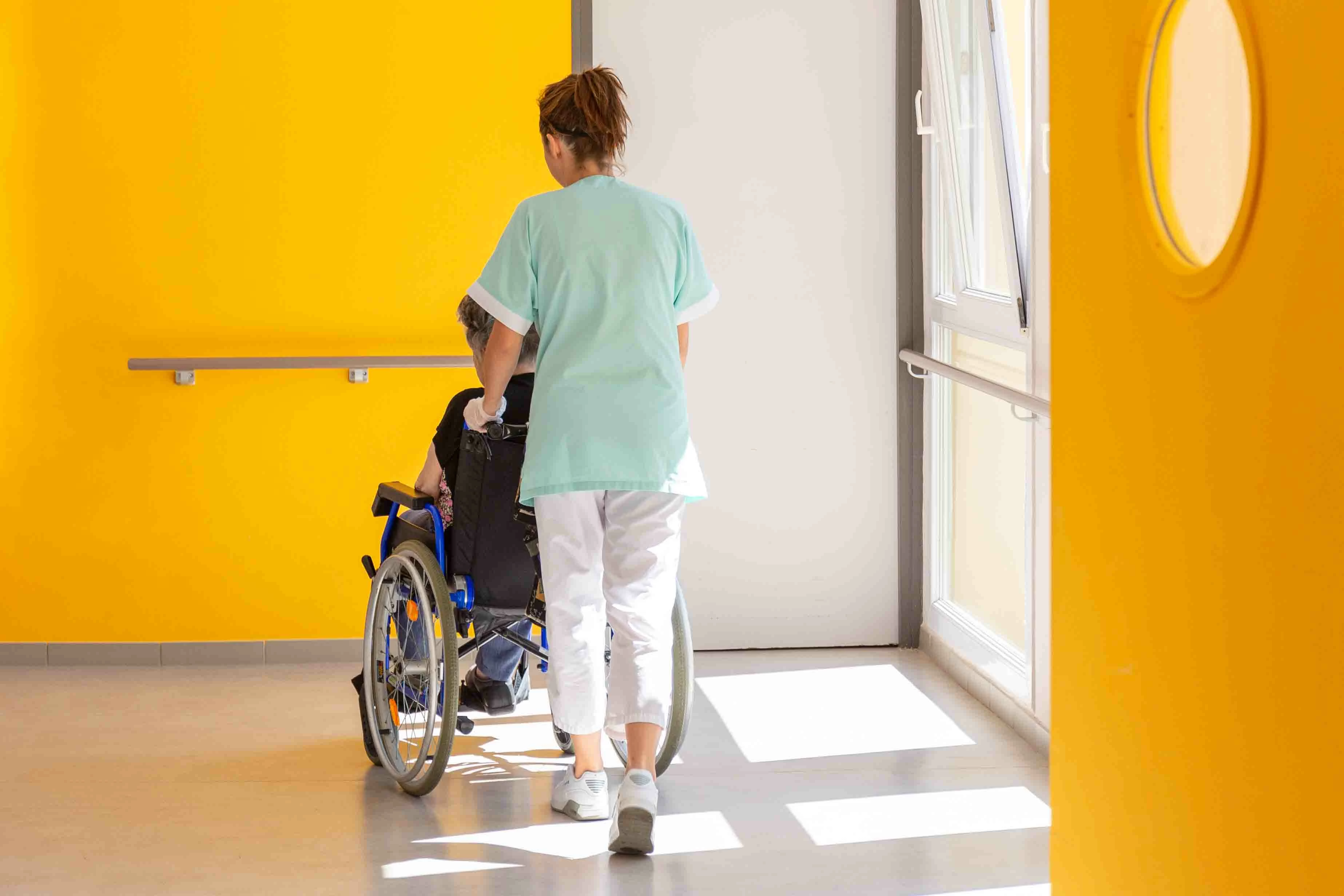 La petite étiquette illisible sur la roue du fauteuil roulant ??